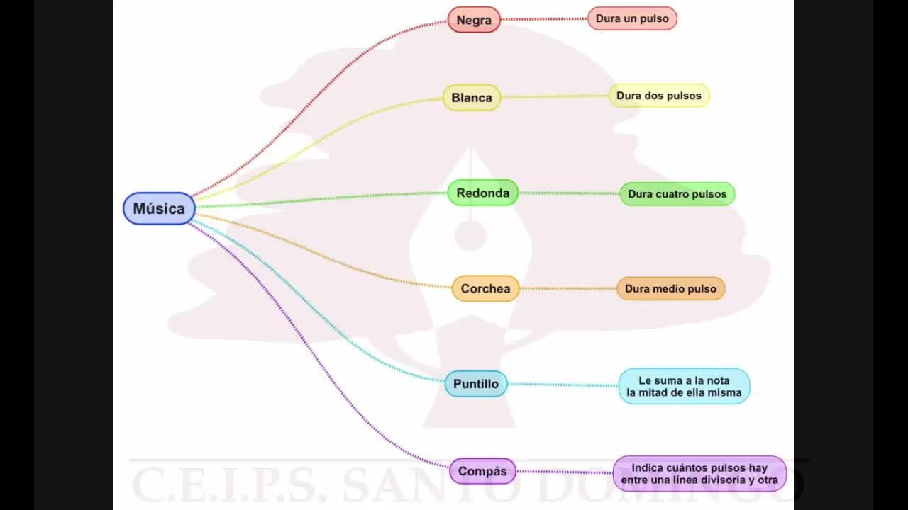 En la música, la negra dura un pulso, la blanca dura dos pulsos, la redonda dura cuatro pulsos, la corchea dura medio pulso, el puntillo le suma la nota a la mitad de ella misma y el compás indica cuántos pulsos hay entre una línea divisoria y otra.