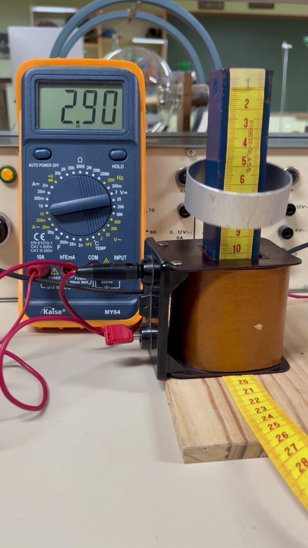 Un anillo de aluminio levita al estar inmerso en un campo magnético alterno producido por un solenoide.