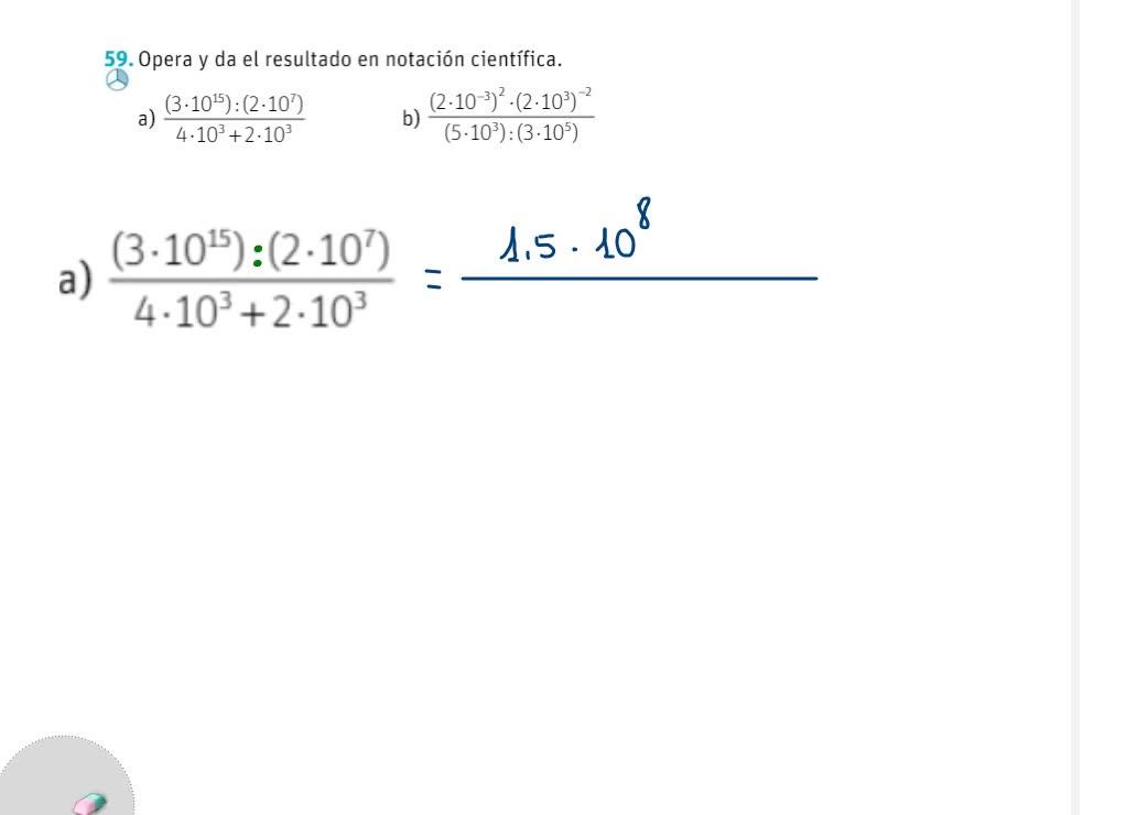 Por el número de notación científica y el número de notación numerador, lo que hago es dividir los números,