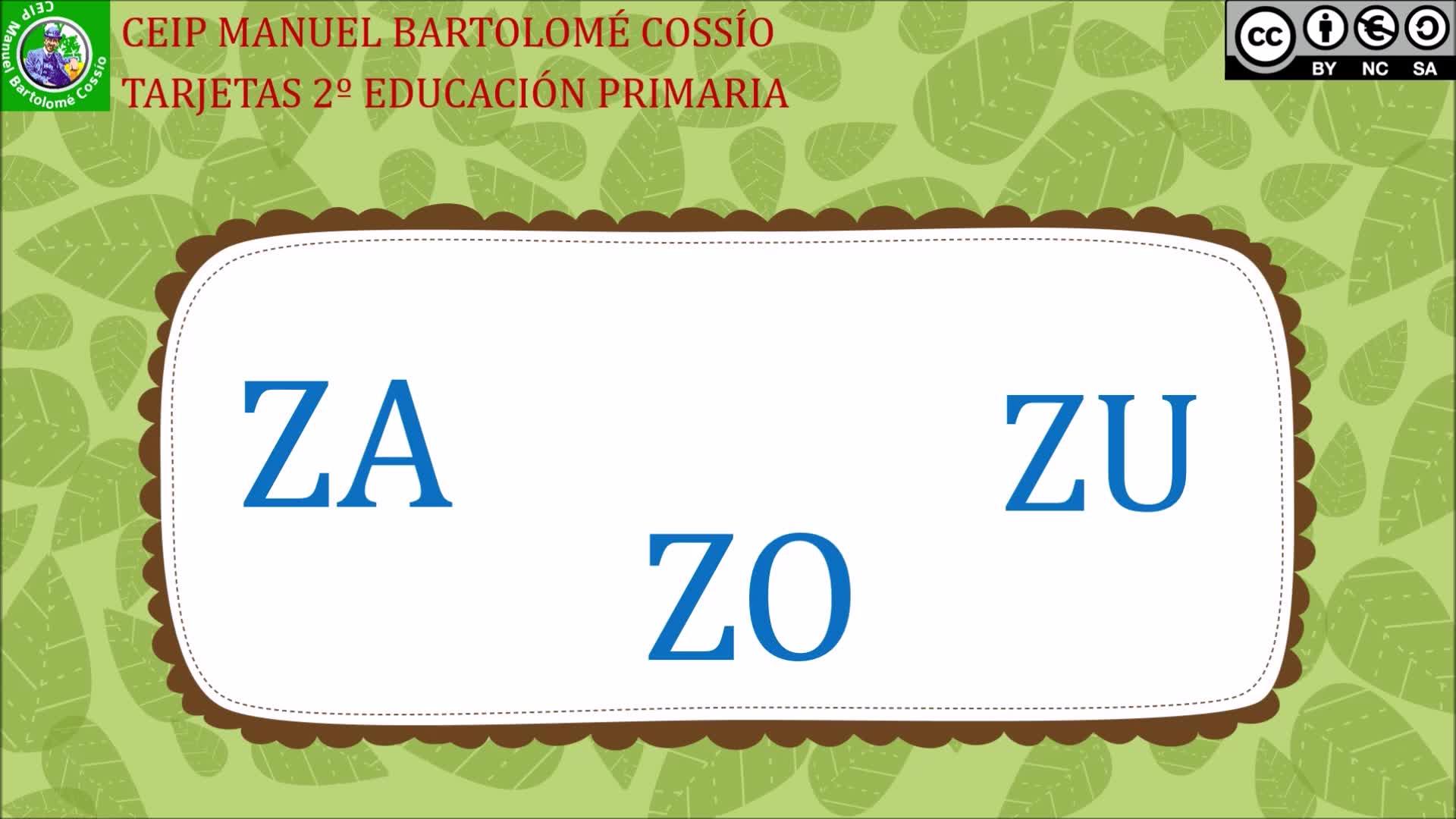 Palabras con Z. Za, zo, zu. Repite conmigo. Za, zo, zu. En castellano, ce y ci se escriben solo con ce.