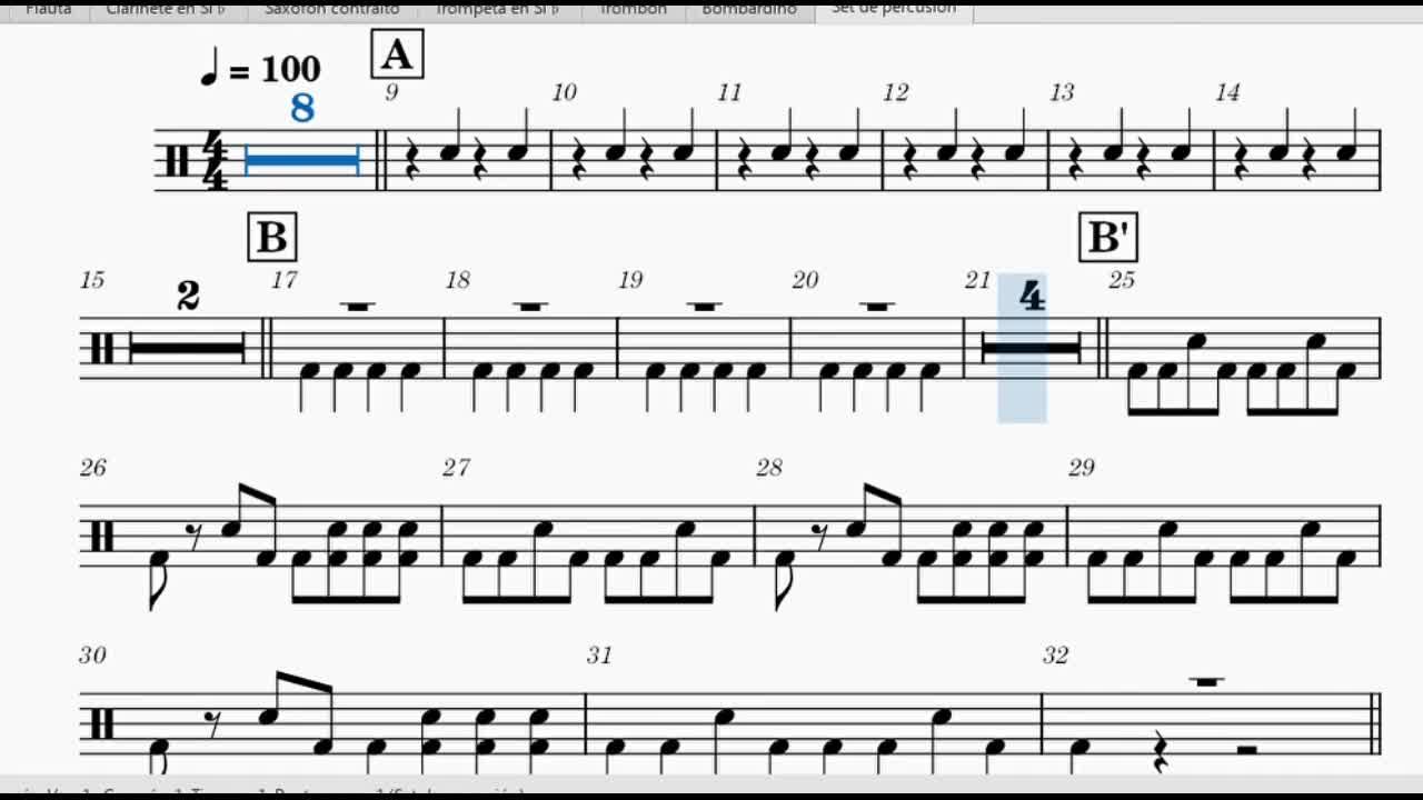Arreglo para Classband (Percusión) de la canción "Quédate".
