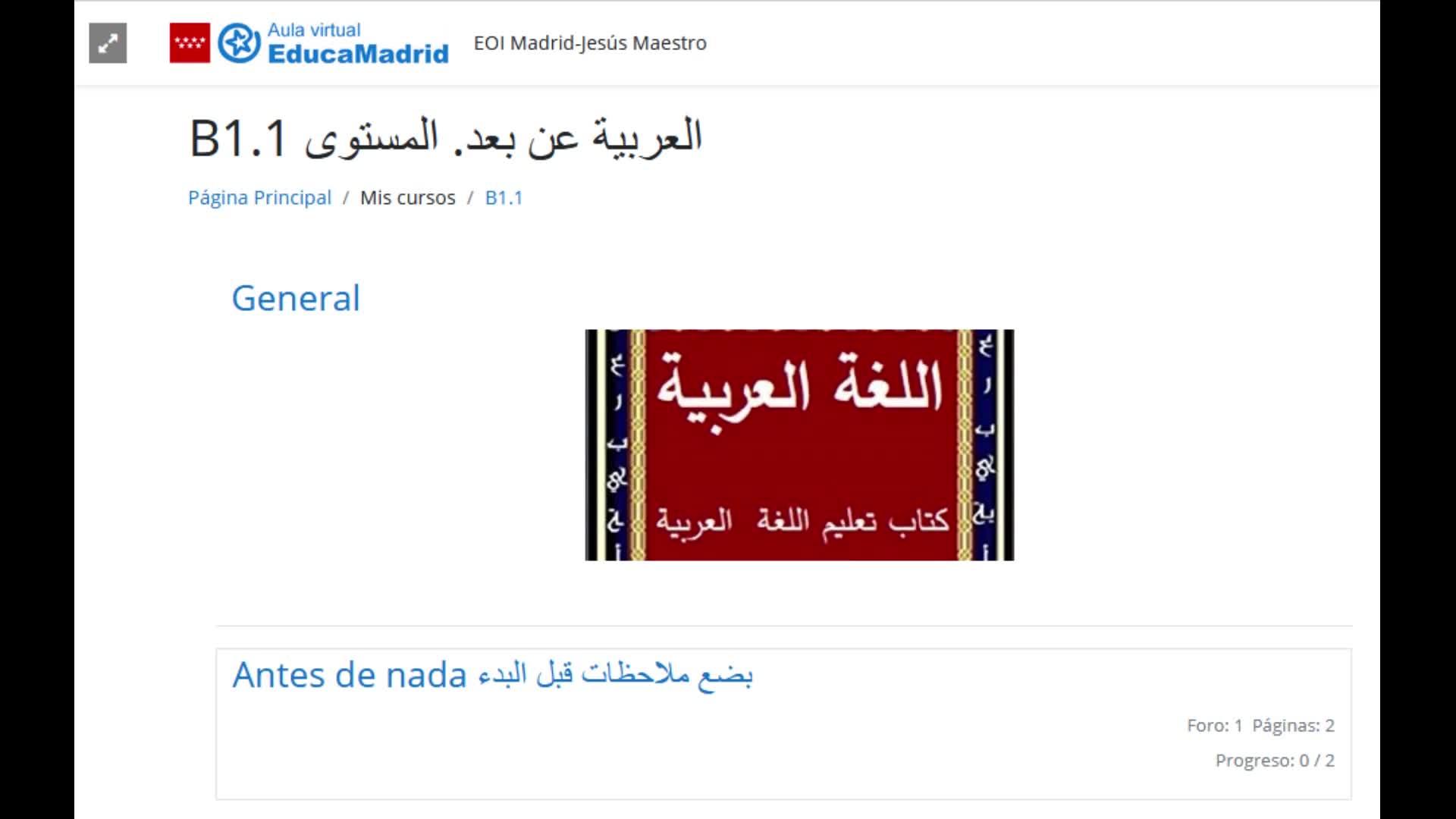 Curso Online Árabe Nivel B1.1 EOI JESÚS MAESTRO - Contenido educativo