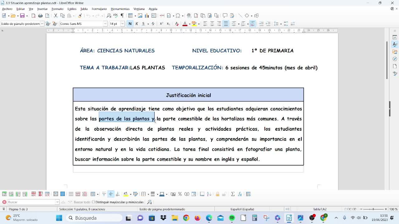 Se engloba dentro del área de Ciencias Naturales en primero de primaria para trabajar las plantas