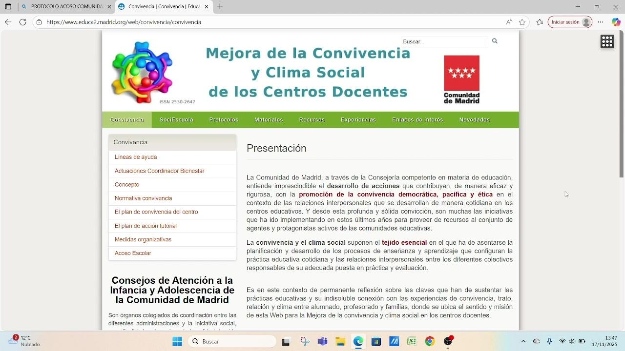 Hola, soy Yoli, soy la coordinadora de bienestar del cole y queremos presentaros la página de convivencia de la Comunidad de Madrid,